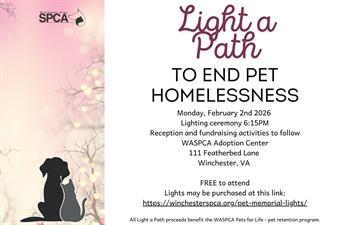 The event is free and open to the public. If you would like to purchase lights in honor of your pet(s) you may use this link: https://winchesterspca.org/pet-memorial-lights/.