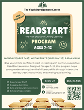 ReadStart is a twice-weekly literacy program that provides young learners with a strong foundation in early reading skills, combined with individualized tutoring support. Designed for children ages 7-9 & 10-12 who may need additional help in fluency, vocabulary, and comprehension, this program aims to boost reading confidence, close literacy gaps, and foster a lifelong love of reading.