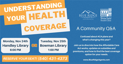 Health insurance can be confusing—but you don’t have to navigate it alone. Join Blue Ridge Agents Insurance and Sinclair Health Clinic for Understanding Your Health Coverage, an informative session designed to break down health plan options and answer your questions.
